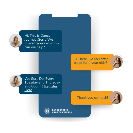 Never miss a call from a potential new student. Our system automatically sends a text to anyone who tries to reach you, ensuring no opportunity slips through the cracks.